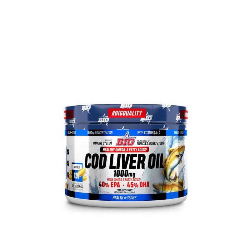 COD LIVER OIL 1000mg de BIG®, con alto contenido en ácidos grasos saludables Omega-3 es el complemento perfecto para ayudar a mantener tu sistema cardiovascular en condiciones normales.