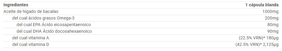 COD LIVER OIL 1000mg de BIG® sirve para controlar el nivel de colesterol y ayudar a nuestro sistema inmunológico, especialmente en situaciones de necesidad como cambios de estación o épocas de estrés.