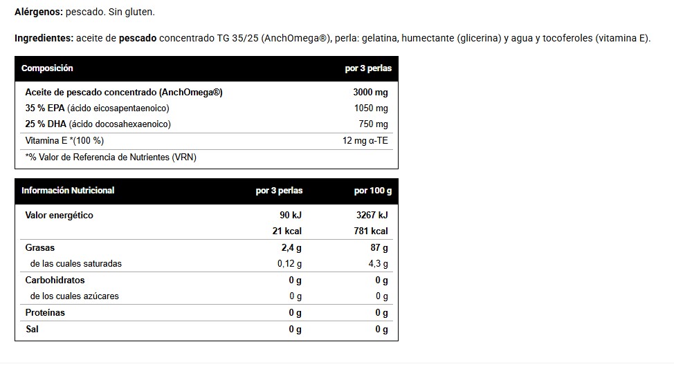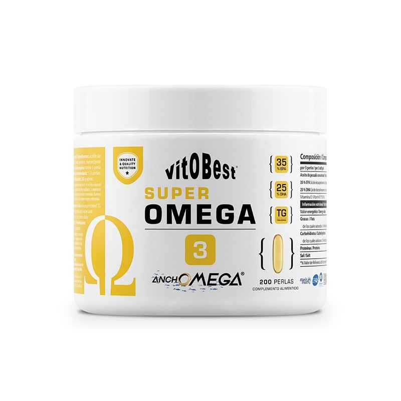 Super Omega 3 (AnchOmega®) de Vit.O.Best es un suplemento de alta potencia, diseñado para aquellas situaciones donde se requiere un mayor impacto fisiológico. Gracias a su contenido en EPA (35 %) y DHA (25 %), aporta beneficios superiores sobre la salud del corazón, el cerebro, el sistema nervioso y los procesos inflamatorios crónicos1,2.