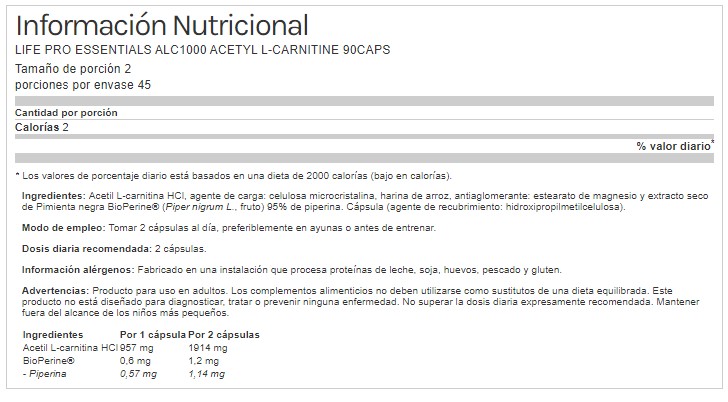 La reducción de grasas acumuladas favorece la pérdida de peso, así como la definición, ya que elimina esa capa grasienta que oculta los músculos. Por ello, Life Pro Essentials ALC1000 Acetyl L-Carnitine es un suplemento ideal para diversos objetivos, aunque es absolutamente necesario acompañar su ingesta con una alimentación adecuada y una práctica deportiva habitual.