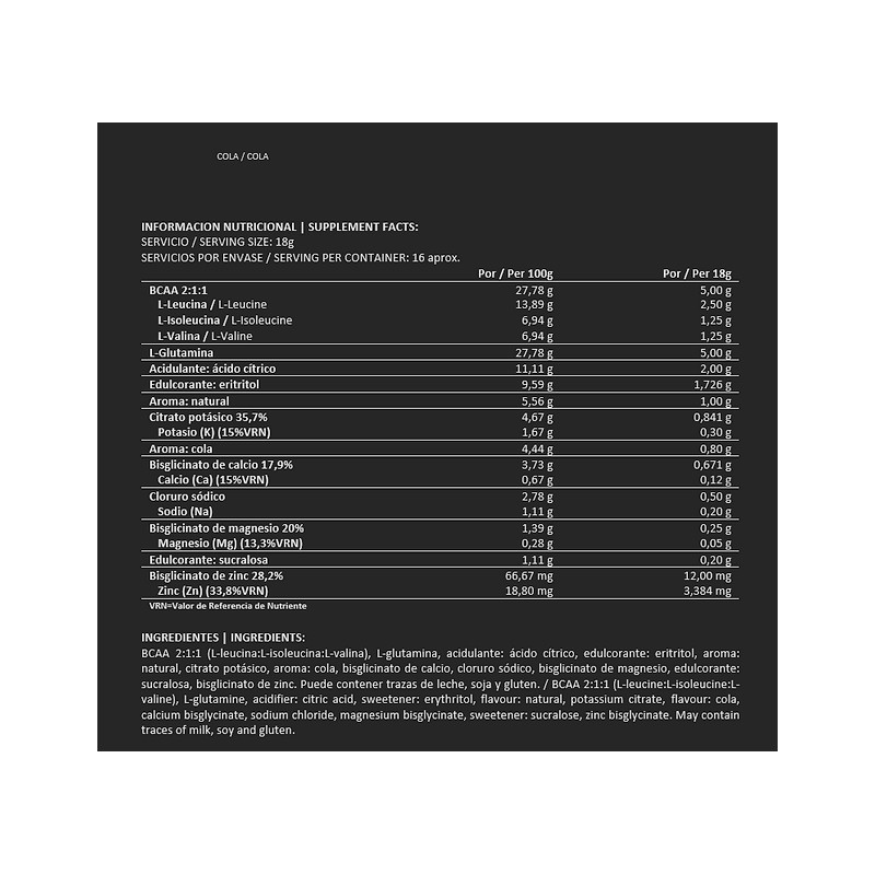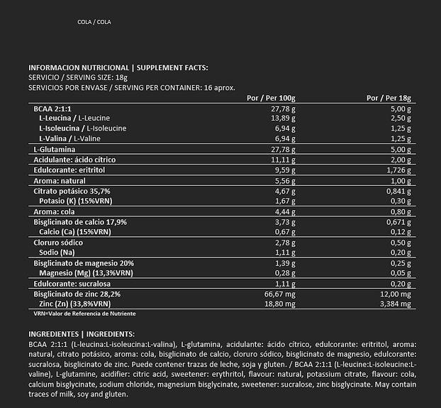 Bcaa+Glutamine de Big Man es un complemento alimenticio a base de aminoácidos y minerales.