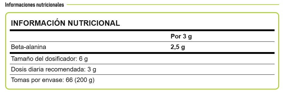 MODO DE EMPLEO: Dosis diaria recomendada: 3g. Tomar medio dosificador (3g) con agua 30 minutos antes del entrenamiento.