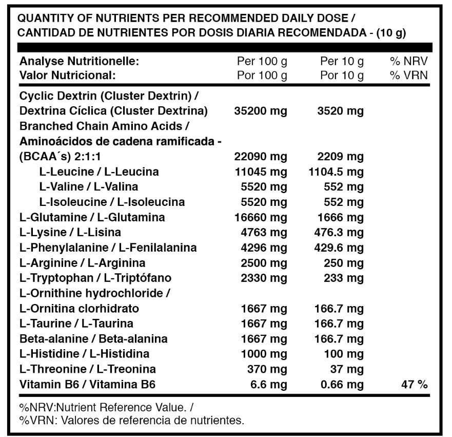 MODO DE EMPLEO: Tomar durante entreno si este es muy intenso y largo e inmediatamente después.