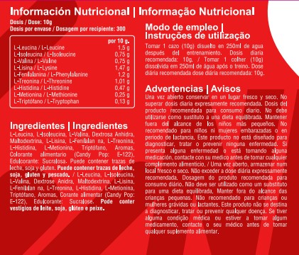 M.A.P ESSENTIAL AMINOS (300 gr) NUTRICION MUSCULAR es una fórmula científicamente estudiada que reune en un solo producto todos los aminoácidos esenciales puros y optimizados para conseguir un desarrollo y crecimiento muscular perfecto y rápido. LIFE PRO MAP (MASTER AMINO ACID PATTERN ó PATRÓN MAESTRO DE AMINOÁCIDOS) es una mezcla patentada que reúne los aminoácidos que el organimo necesita para desarrollarse y crecer, mejorando la función metabólica y, por lo tanto, el crecimiento de los músculos, así como una mejor protección del corazón (que es nuestro principal músculo) así como grandes beneficios en el sistema neurotransmisor del cuerpo. Las tres cuartas partes del cuerpo humano están compuestas por los 22 aminoácidos que el cuerpo humano necesita para funcionar debidamente. Algunos de los aminoácidos, no son esenciales, por lo que el cuerpo humano podría producirlos siempre que cuente con las principales materias primas, pero TODOS, absolutamente TODOS LOS AMINOÁCIDOS deben ser tenidos a discrepción por el organismo ya que el cuerpo humano no tiene mecanismo para poder almacenarlos y usarlos cuando sea necesario. Por ello es tan importante para los deportistas y, en especial para culturistas, bodybuilders, etc... la suplementación con proteínas, aminoácidos, BCAA's y, por lo tanto con M.A.P ESSENTIAL AMINOS (300 gr) NUTRICION MUSCULAR contiene los 9 aminoácidos esenciales que nuestro cuerpo no puede producir y, por lo tanto necesitamos conseguirlos por medio de una alimentación adecuada o en caso excepcionales como deportistas de élite. Tomar una dosis de M.A.P ESSENTIAL AMINOS (300 gr) NUTRICION MUSCULAR aproximadamente aporta al organismo el equivalente a 400 o 500 gramos de carne magra.