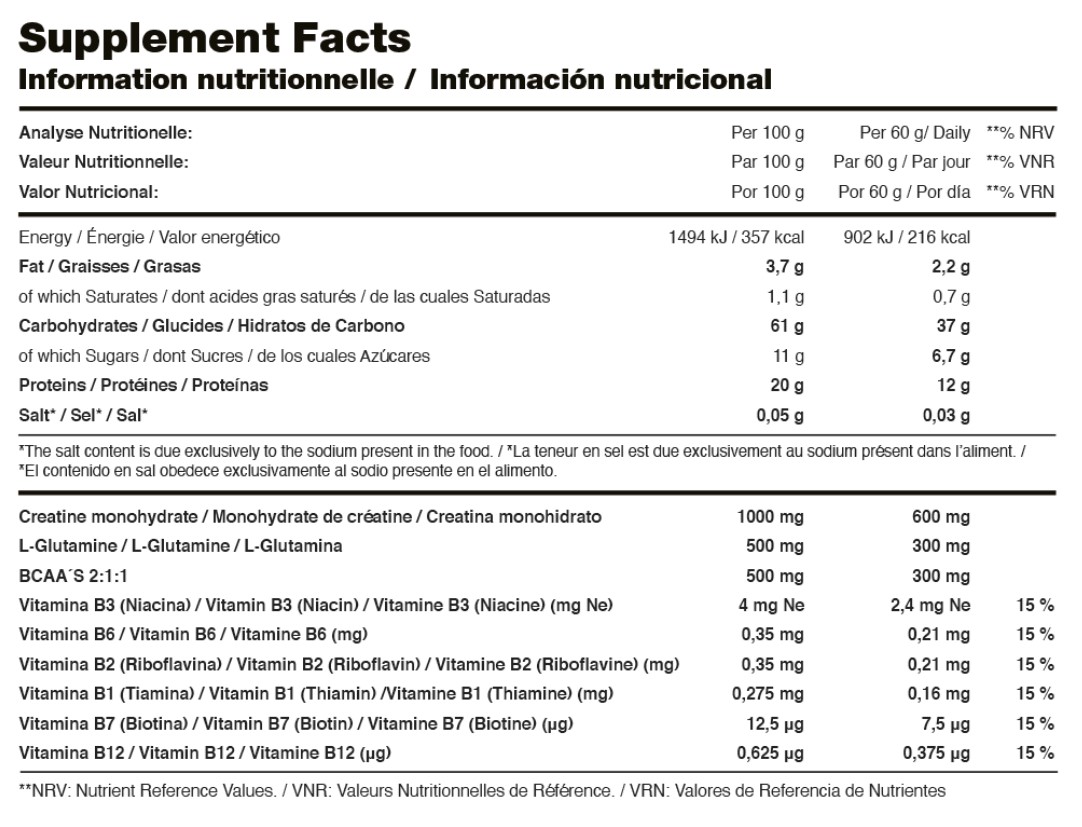MODO DE EMPLEO: Como complemento a una dieta equilibrada, tomar dos batidos al día de 60 g con agua si es después del entreno, y con leche o batido vegetal, como complemento de la dieta.