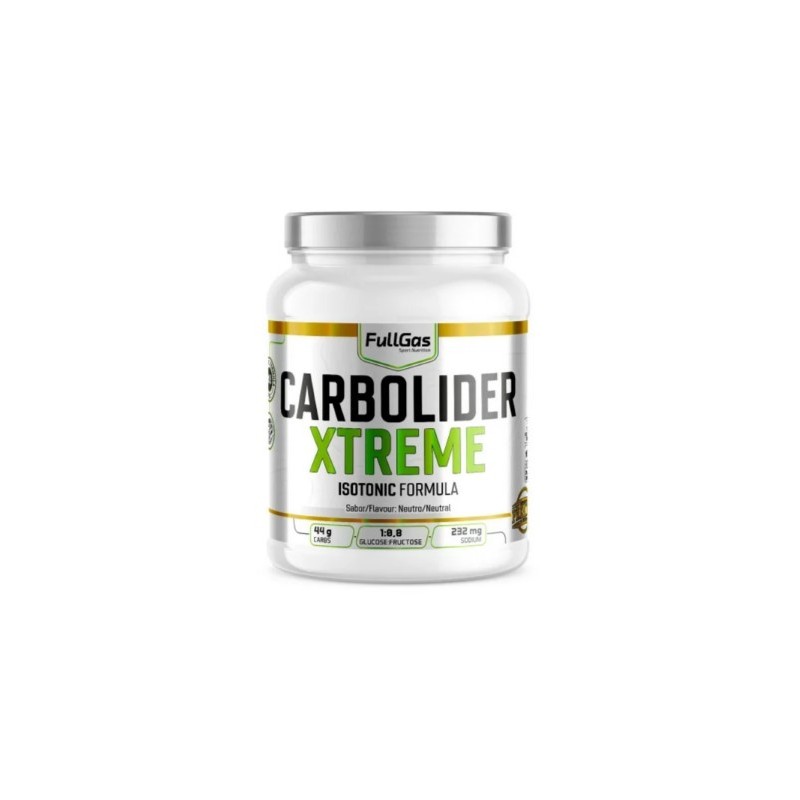 Carbolider Xtreme de FullGas Sport es una bebida isotónica para deportes de resistencia a base de carbohidratos (ratio 1:0,8 glucosa:fructosa) y electrolitos (232 mg sodio por dosis). 100% vegano, sin gluten y sin lactosa.