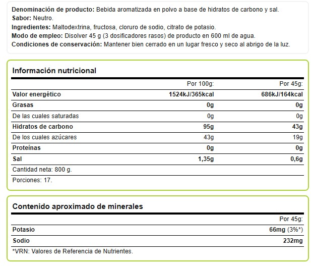 MODO DE EMPLEO: Disolver 45 g (3 dosificadores rasos) de producto en 600 ml de agua.
