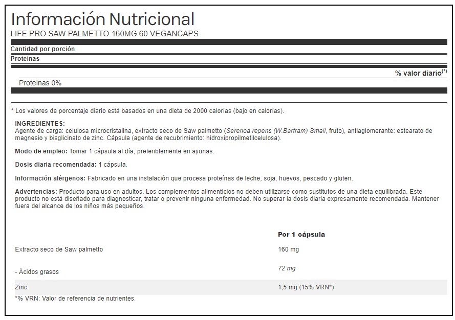 Saw Palmetto de Life Pro es una especie de palmera enana que pertenece al género Serenoa. Es originaria del SE de los Estados Unidos y es conocida por varios nombres: Serenoa Repens, Saw Palmetto, Sabal Serrulatum o Dwarf Palm.