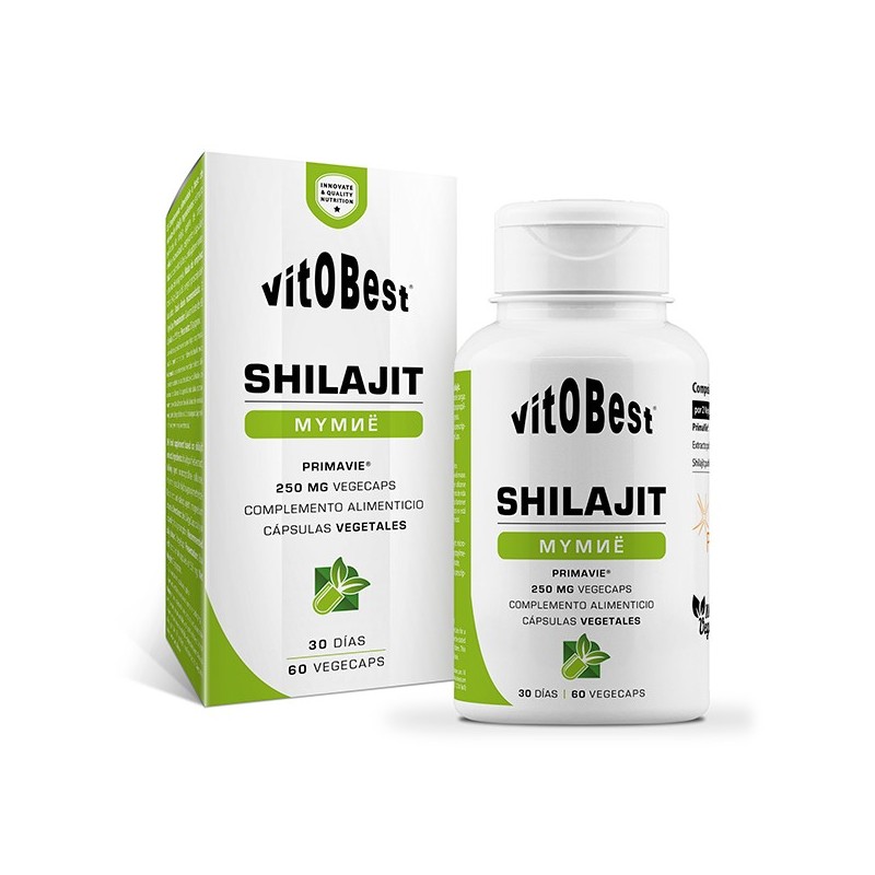 Ingredientes: PrimaVie®: extracto purificado de shilajit, agente de carga: celulosa microcristalina, espesante (cápsula): hidroxipropilmetilcelulosa y antiaglomerante: estearato de magnesio.