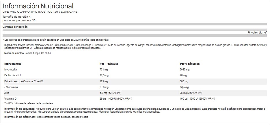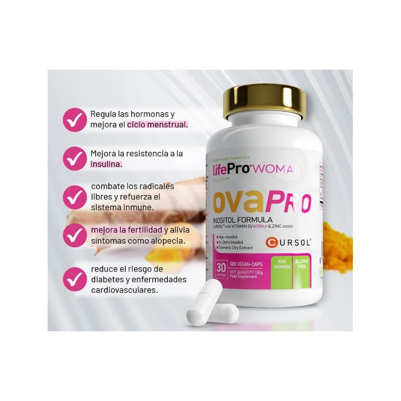 Con la inclusión de cúrcuma patentada Cursol, Life Pro Ovapro Myo Inositol Cápsulas Veganas combate los radicales libres, reforzando la salud general y reduciendo el riesgo de complicaciones derivadas del estrés oxidativo.