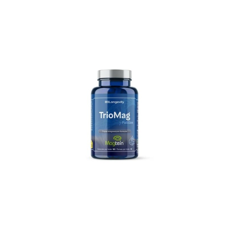 TrioMag de Fullgas Sport es un complemento alimenticio a base de tres formas de magnesio de alto biodisponibilidad: L-treonato, bisglicinato y citrato. Se trata de una formulación creada por el médico endocrinólogo Borja Bandera, y forma parte de la línea BB Longevity.