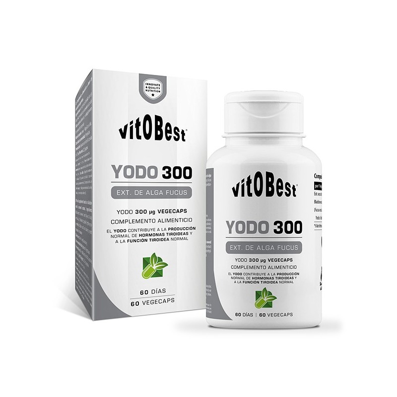 Yodo de Vitobest®, es un suplemento alimenticio 100 % natural, compuesto de 300 mg de extracto seco de alga fucus que aporta 300 µg de yodo por toma.