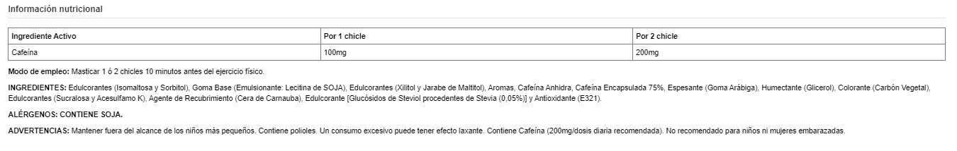 Modo de empleo : Masticar 1 ó 2 chicles 10 minutos antes del ejercicio físico.