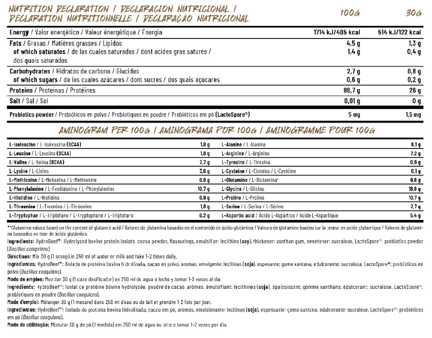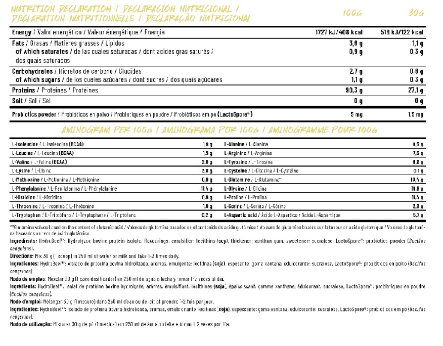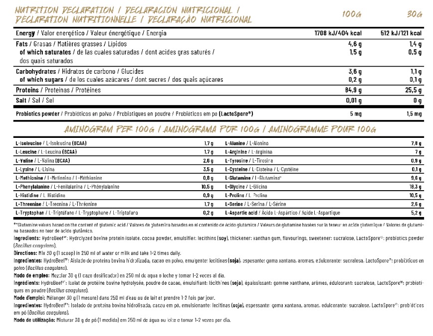 BEEF XT de Muscle Shadow Aislado de proteína de ternera hidrolizada HydroBeef™ con complejo de probióticos LactoSpore®
