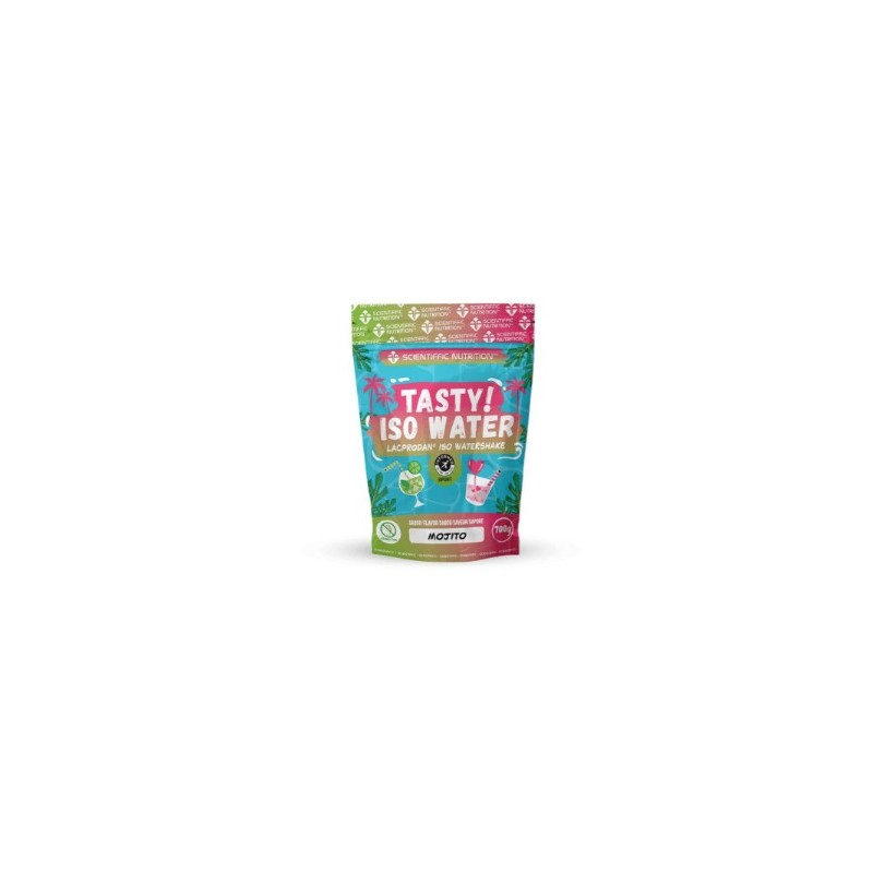 Iso Water Tasty de Scientiffic Nutrition Sin gluten 3, sin grasa 2 y sin azúcar 2, que se digiere como agua y sabe a mojito o piruleta ¡Olvídate del sabor a batido y eleva tu crecimiento 1 y recuperación 1 con frescura en cada toma!
