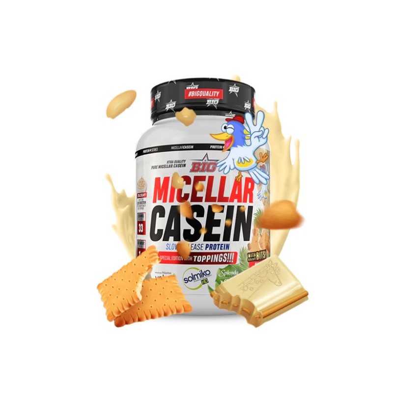MICELLAR CASEIN de BIG® es una caseína micelar de la más alta calidad hecha a base de Solmiko® de Glanbia Nutritionals®. La caseína es la proteína más abundante de la leche, representando un 80% aproximadamente de la cantidad total de proteínas presentes, y contiene cálcio y fósforo además de otros micronutrientes como hierro, zinc y cobre. La caseína se obtiene sin el empleo de sustancias químicas, mediante un sistema de filtración.
