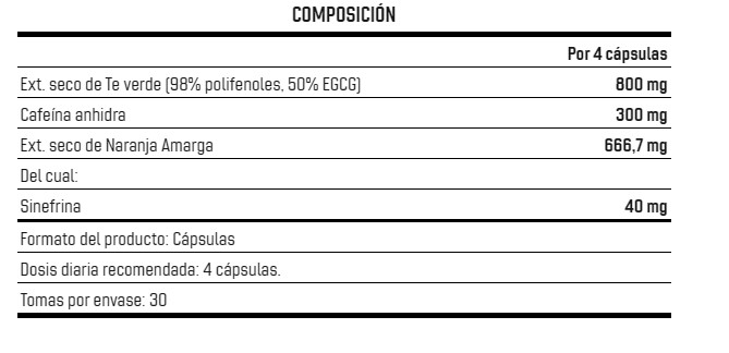 MODO DE EMPLEO: 4 cápsulas. Tomar 2 cápsulas 30 min. antes del desayuno y 2 cápsulas 30 min. antes de la comida o entrenamiento. No tomar más allá de media tarde ya que podría interferir en el sueño.
