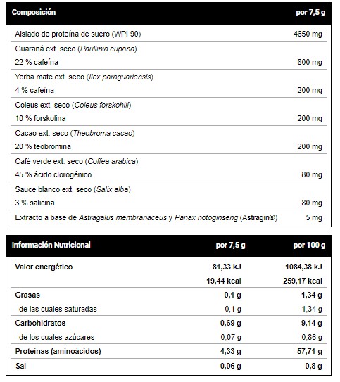 Hellcore contiene una exclusiva fórmula elaborada a partir de extractos vegetales naturales ricos en cafeína1 y otros principios activos cuya acción sinérgica provoca un intenso aumento de la actividad metabólica y un uso más eficaz de los productos energéticos generados durante la lipólisis en los procesos básicos vitales.