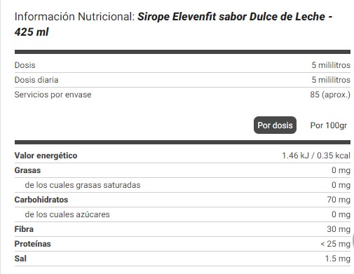 ¿Qué es  Sirope Dulce De Leche (425ml) Elevenfit?