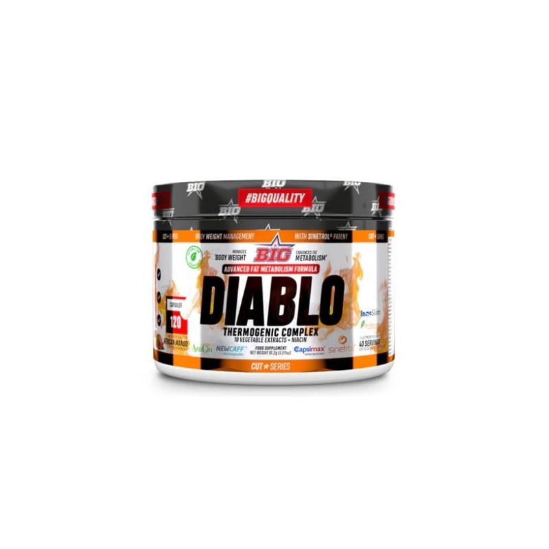 DIABLO de Big contiene Capximax® junto con extracto de mango africano. Estos ingredientes te permitirán llegar a quemar hasta 12 veces mas grasa que en una situacial semejante.