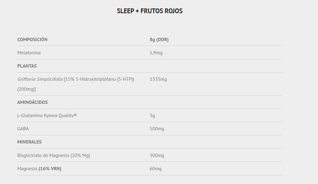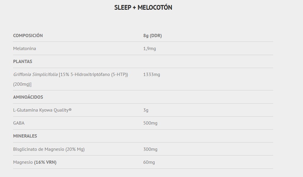 Modo de empleo: Añadir 8 g de producto a 250 ml de agua y remover. No consumir más de 1 dosis diaria debido a su contenido en L-Glutamina y Melatonina.