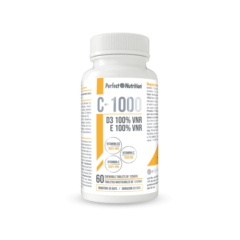 C-1000 + D3 + E de PERFECT NUTRITION: La vitamina C es una vitamina antioxidante esencial para la salud corporal y es especialmente importante para mantener una piel sana. También conocida como ácido ascórbico, la vitamina C es hidrosoluble. Contrariamente a la mayoría de los animales, los humanos no pueden producir su propia vitamina C.