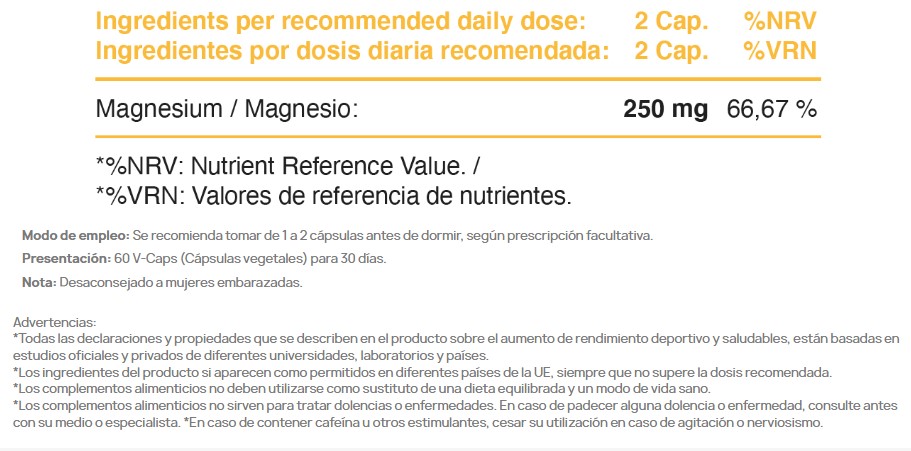 Modo de empleo: Se recomienda tomar de 1 a 2 cápsulas antes de dormir, según prescripción facultativa.