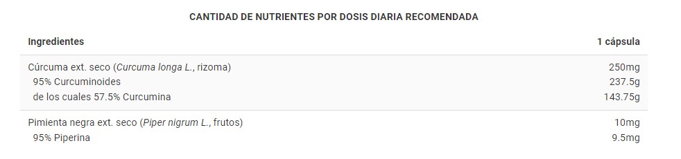 Real Health Curcumin combina dos de los principios activos más estudiados y usados en la suplementación deportiva en la última década, la cúrcuma y la piperina, en un novedoso complemento alimenticio 100% natural.
